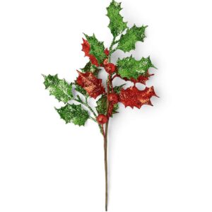 Get Festive with the 10″ Christmas Holly Leaves With Mistletoe Glitter Pick by Bloom Room