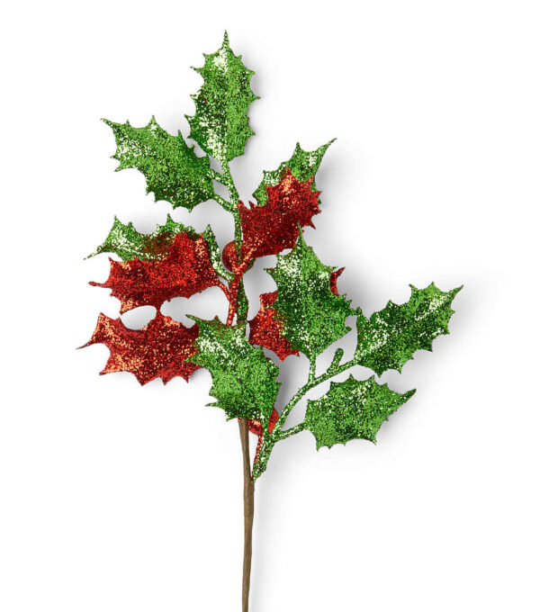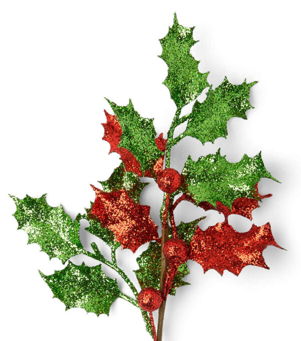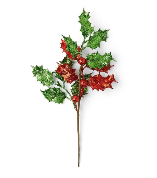 Get Festive with the 10″ Christmas Holly Leaves With Mistletoe Glitter Pick by Bloom Room