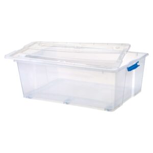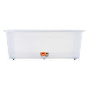 The Top Notch Plastic Durable Storage Box with Lid will help you keep your linen, stationery, office files and more organized. This plastic storage box is clear and comes with a tight-seal lid to keep the contents undamaged and safe from dust. It is designed with wheels for easy portability. You can use it at home or office.