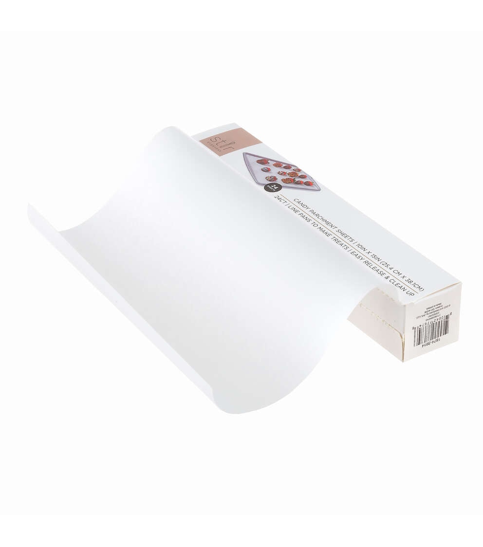 Use the STIR Everyday Candy Parchment Sheets for easy and clean release of homemade candies. This pack contains 24 parchment sheets that you can use to line baking pans. These sheets will also come in handy to line trays while coating your homemade treats with chocolate ganache or sprinkles. They will make a great addition to your baking supplies.