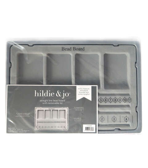 The hildie & jo Straight Line Bead Board with Removable Lid is sure to make jewelry making easy. This bead board comes with a removable lid. It is designed with four recessed compartments that you can use to keep beads, charms and jewelry findings. Use the four grooves to measure the lengths of bracelets you are designing. You can also gift it to someone who loves customizing jewelry.