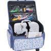 This stylish tote features a beautiful printed fabric design that is sure to turn heads. The four wheels make it easy to transport your supplies from one location to another, while the durable 100% polyester construction ensures that your tote will last for years to come.