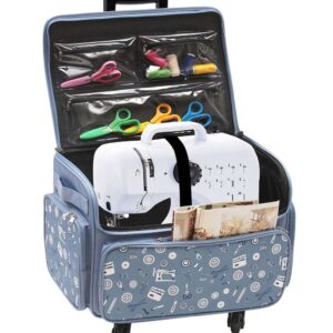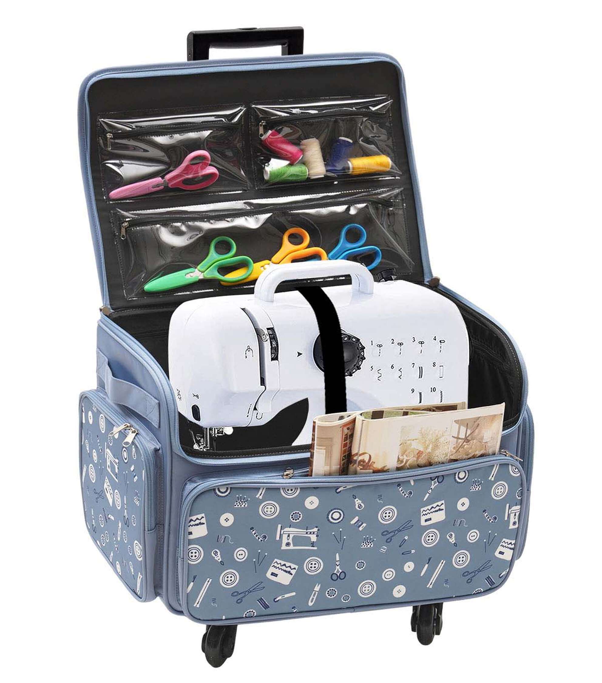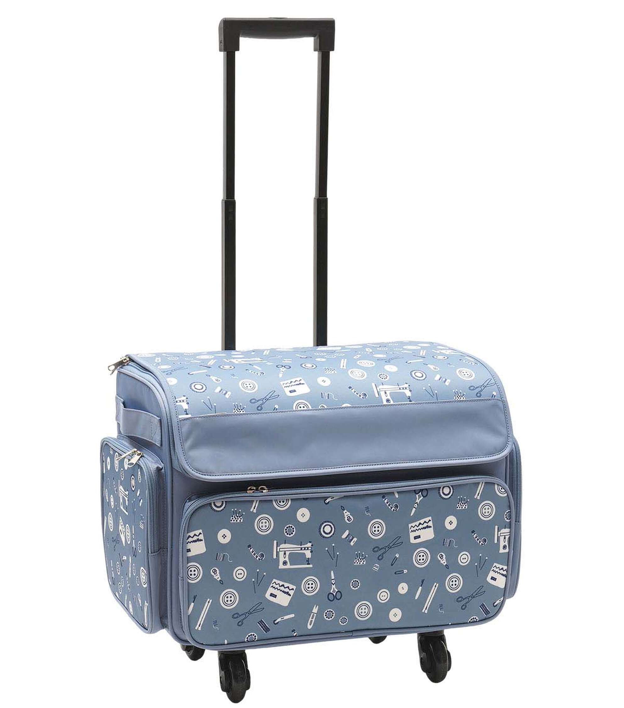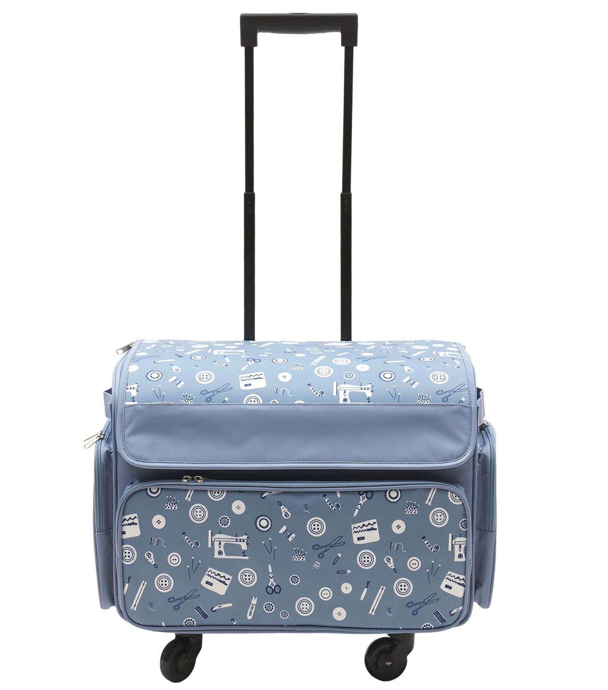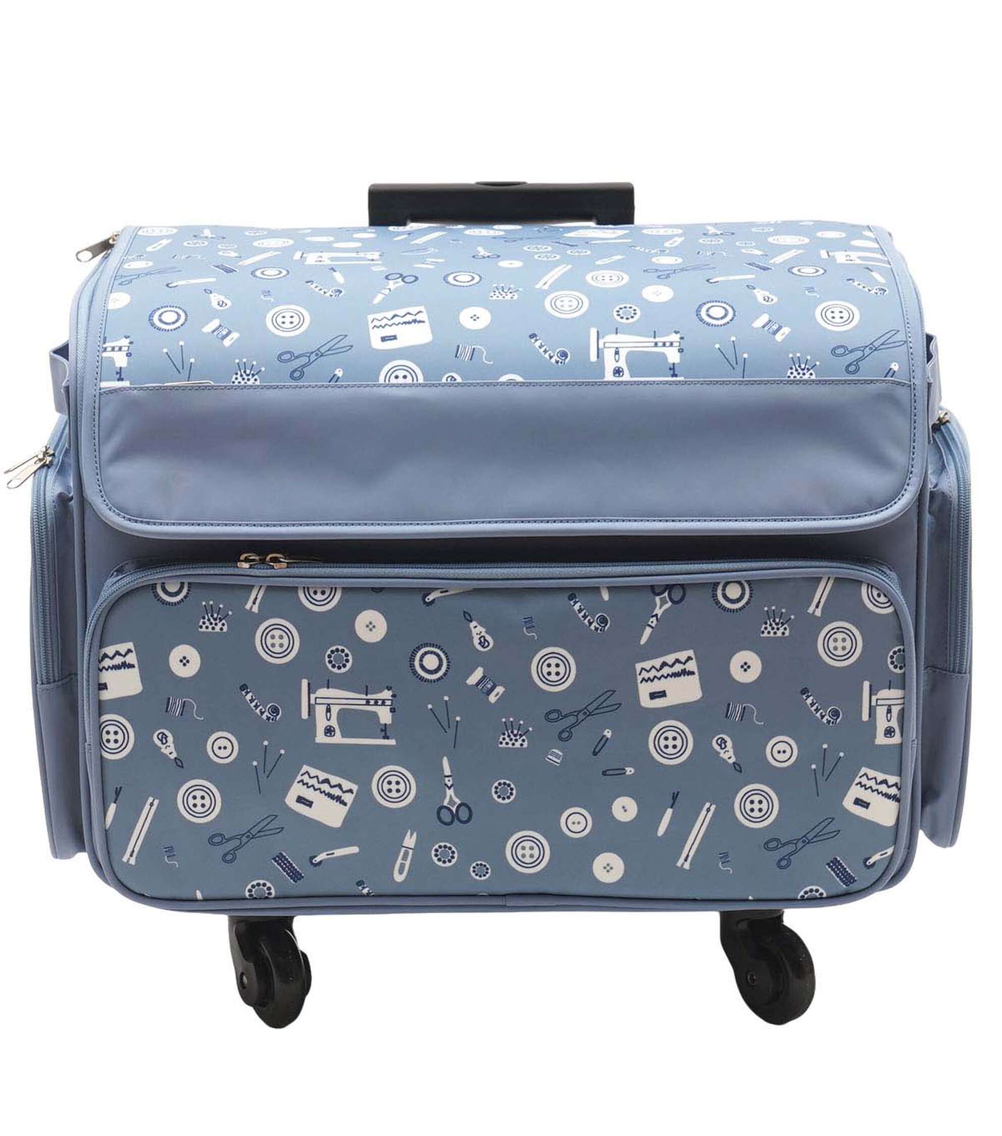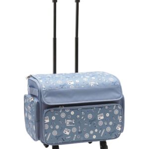 Stay Organized with the 13″ x 18″ Sewing Print on Blue Rolling Sewing Storage Tote by Top Notch