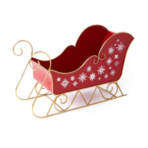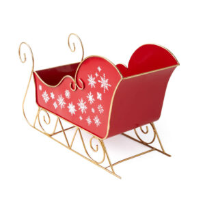 Made of 100% iron, this sleigh is both durable and long lasting. Measuring 15.16” x 6.77” x 10”, it is the perfect size for displaying your favorite holiday decorations. The red, white, and gold color scheme is classic and timeless, making it a great addition to any holiday collection.