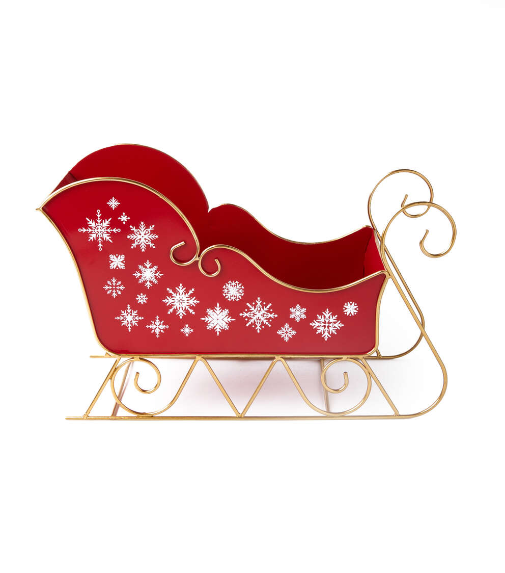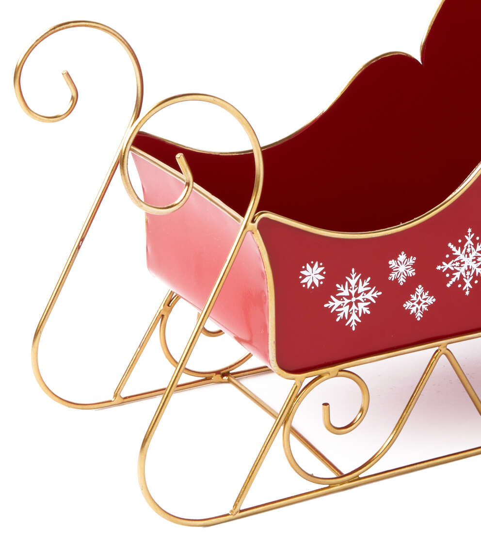 Bring the magic of Christmas to your home with this charming metal sleigh. Perfect for displaying on your mantle or as part of your holiday decor, this sleigh is sure to bring joy to all who see it. The bright red color and intricate design make it a standout piece that will add a festive touch to any room.
