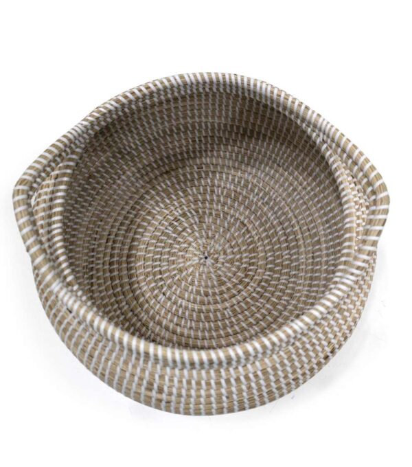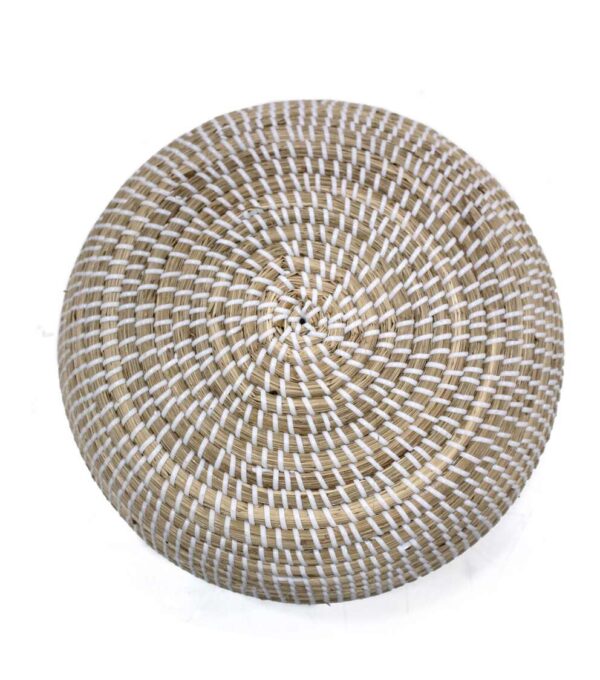 Each basket is carefully made by hand, by crafts men and women in Vietnam, using traditional tools and techniques. In a lovely soft, natural finish, these baskets are made from seagrass and woven with white plastic string. The basket with simple pattern that you can put it in anywhere in your home for storage and decoration as well.