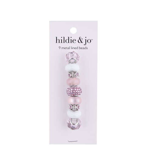 Sporting lovely pink and white shades, the hildie & jo Mix & Mingle Metal Lined Glass Beads – Pink & White are perfect for making chic bracelets for yourself and your loved ones. They are crafted using metal and glass, and lined with silver-toned metal. String these wide-holed jewelry beads onto thick cords or chains to create trendy projects.