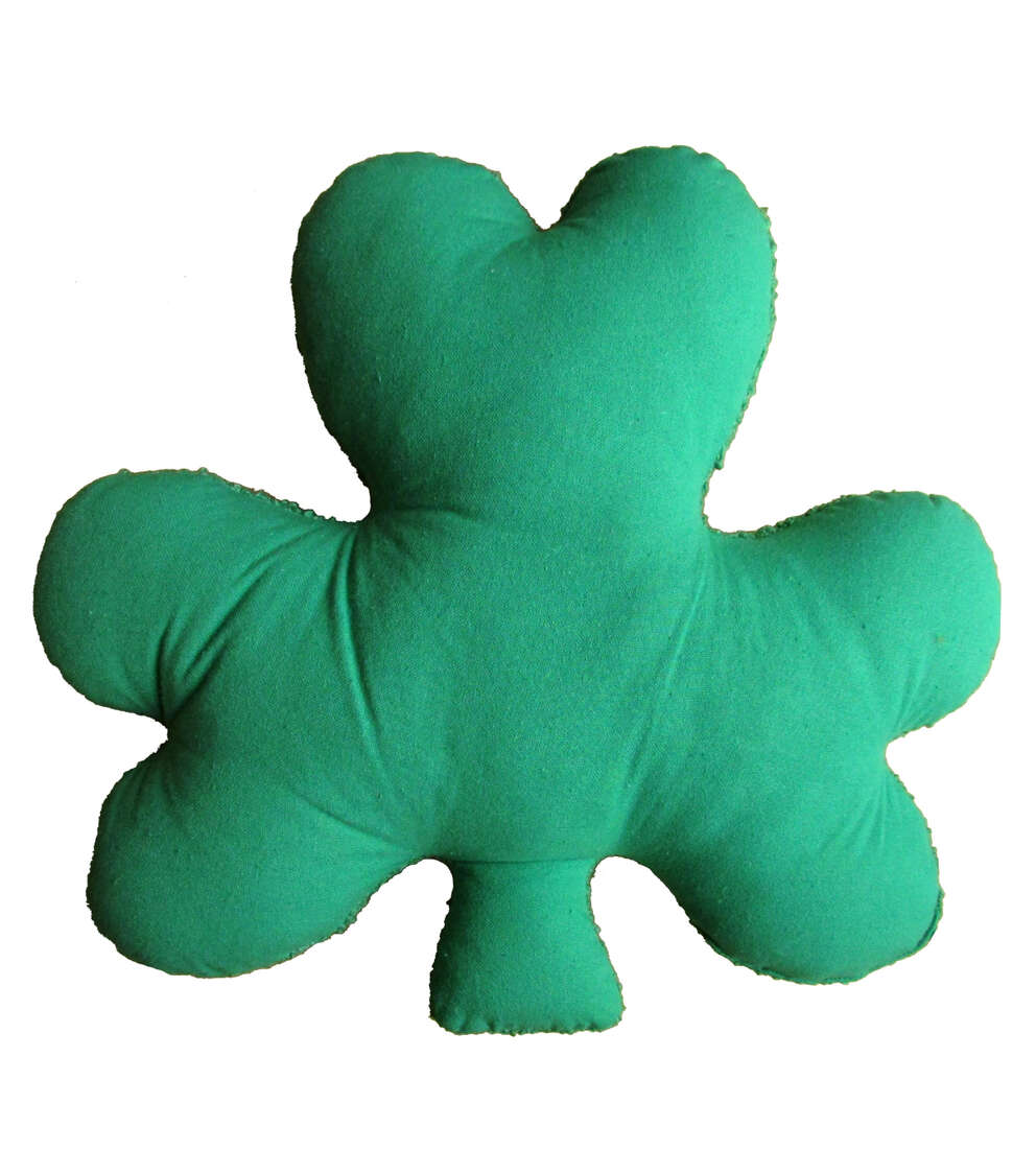 Our unique Shamrock pillow is made with 100% green polyester boucle yarn . Its soft to touch .Hand made and hand filled . Back is in recycled cotton .