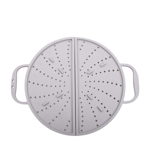 Use this foldable splatter guard to protect your stovetop and counters while cooking. With a 12.5 in. diameter, it will easily fit over most pots and pans. The silicone is easy to clean and reinforced with stainless steel for stability.