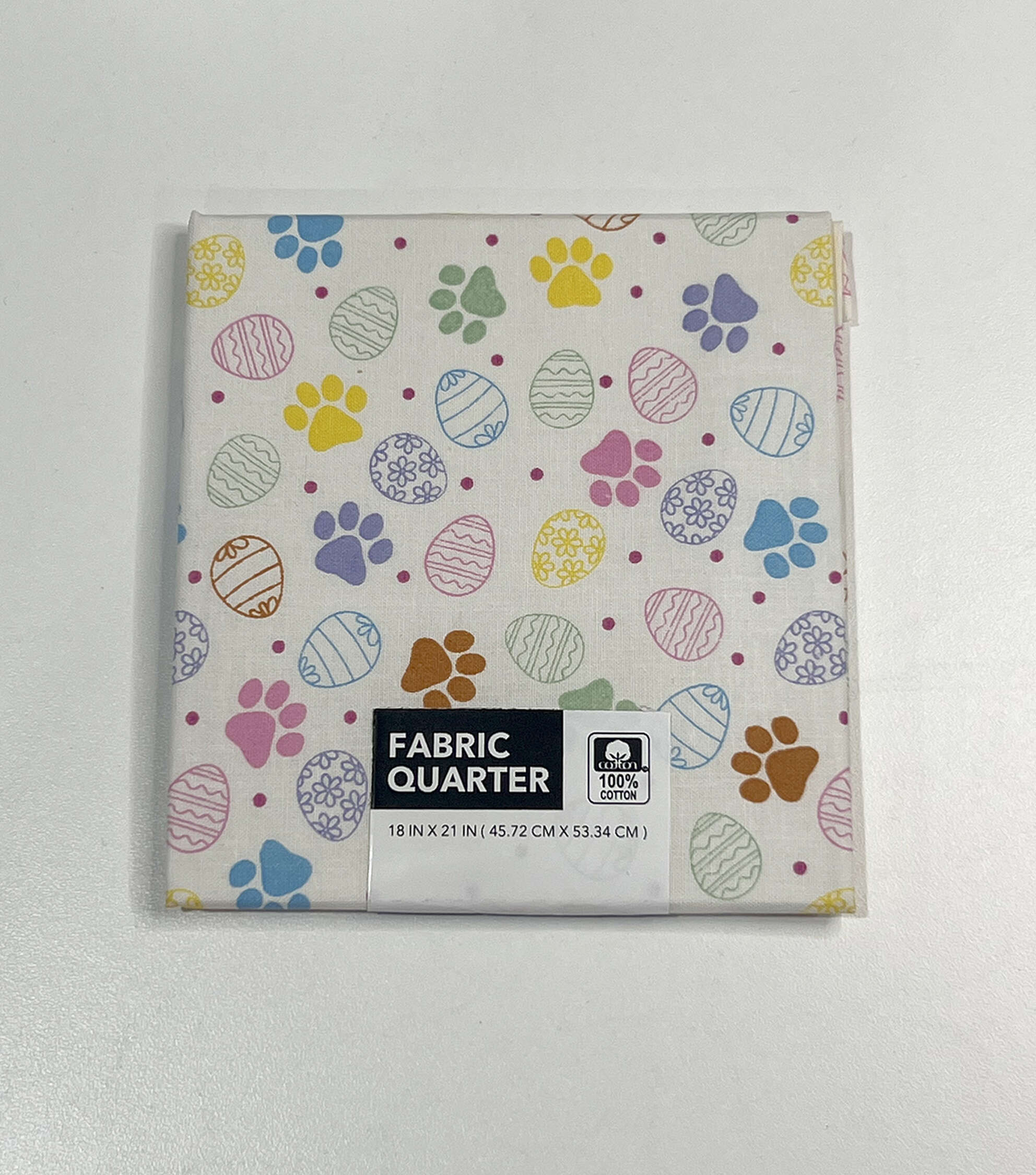 Unleash your imagination with this charming 18″ x 21″ Paw Prints & Eggs on White Cotton Fabric Quarter 1pc. Made from 100% cotton, this fabric is perfect for quilts, crafts, fall decor, placemats, napkins, and more. The playful paw prints and eggs on a white background add a touch of whimsy to any project.