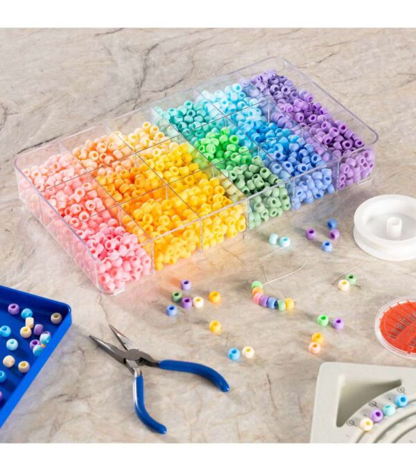 Watch your little one at their artistic best as they use the POP! Possibilities Pony Bead Box Kit – Rainbow in their craft and jewelry projects. This box consists of pony beads in beautiful rainbow hues and will make a delightful addition to their craft box. They can use these beads to create necklaces