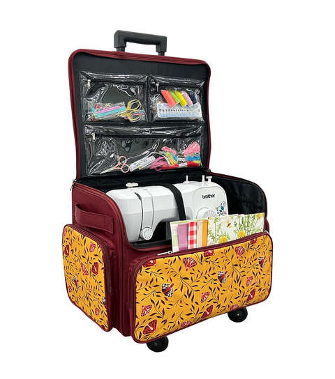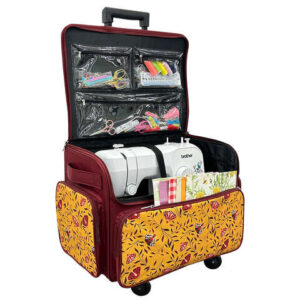 Keep your sewing supplies in one convenient place with the 21″ x 18″ Butterflies & Vines Gold Rolling Sewing Storage Tote by Top Notch. This tote features a beautiful butterflies and vines design in gold, making it both stylish and functional. The 360° rotation wheels make it easy to move the tote around your workspace, and the sun-dried tomato color adds a pop of color to your sewing area.