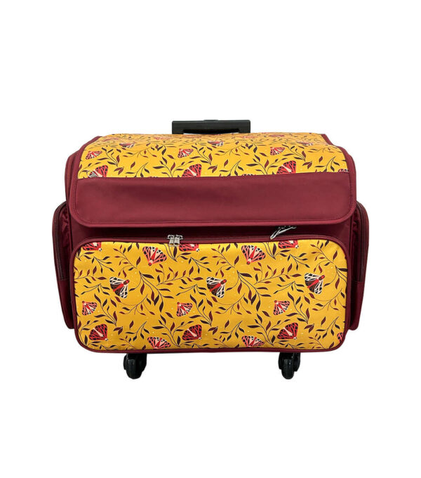 Keep your sewing supplies in one convenient place with the 21″ x 18″ Butterflies & Vines Gold Rolling Sewing Storage Tote by Top Notch. This tote features a beautiful butterflies and vines design in gold, making it both stylish and functional. The 360° rotation wheels make it easy to move the tote around your workspace, and the sun-dried tomato color adds a pop of color to your sewing area.