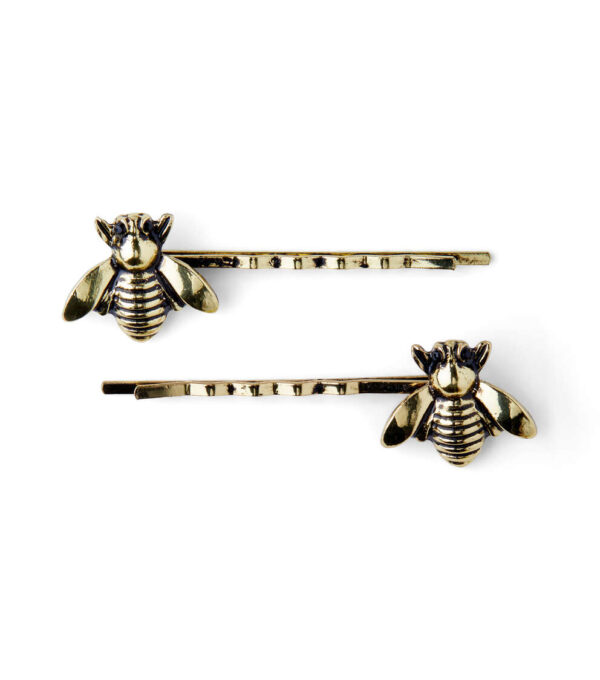 Add interest to your pretty hairdos, by wearing the hildie & jo Bee Antique Gold Hair Pins. They feature bee-shaped charms at the end, which have black eyes and raised detailing on the body. The pack includes two antique gold hair pins made of iron and zinc alloy.