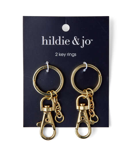 Create interesting DIY craft projects with embellishments like the hildie & jo Symbolize Gold Key Rings. These charms are beautifully shaped into gold key rings for visual flair. For easy attachment, these pieces come with a lobster clasp. Add these charms to any bracelet or decor project to create a lovely impression. Each pack includes two key rings.