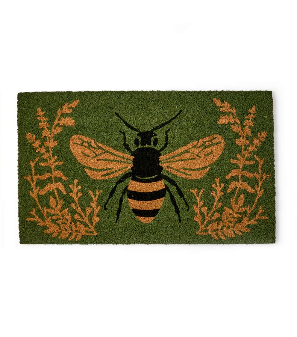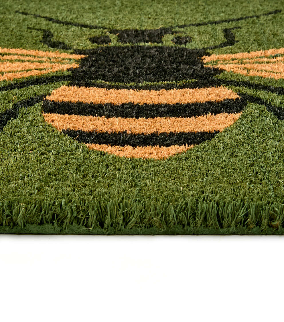 Welcome Your Guests with the 30″ Green & Yellow Bee Coir Doormat by Place & Time