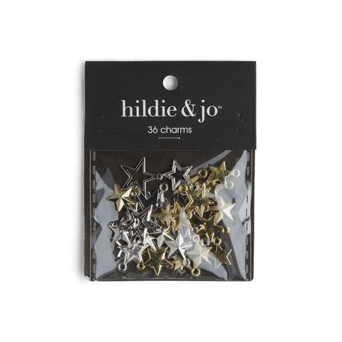 Give your DIY craft projects a starry look using the hildie & jo Boulevard Stars Silver & Gold Charms. These charms are delightfully shaped into stars that flaunt a mix of gold and silver for visual flair. Use these assorted stars to design lovely bracelets, necklaces, chokers and more. The pack comes with 36 charms in a variety of patterns like open, smooth, textured, raised and more.