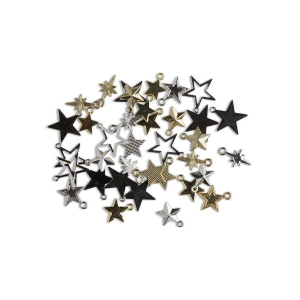 Give your DIY craft projects a starry look using the hildie & jo Boulevard Stars Silver & Gold Charms. These charms are delightfully shaped into stars that flaunt a mix of gold and silver for visual flair. Use these assorted stars to design lovely bracelets, necklaces, chokers and more. The pack comes with 36 charms in a variety of patterns like open, smooth, textured, raised and more.
