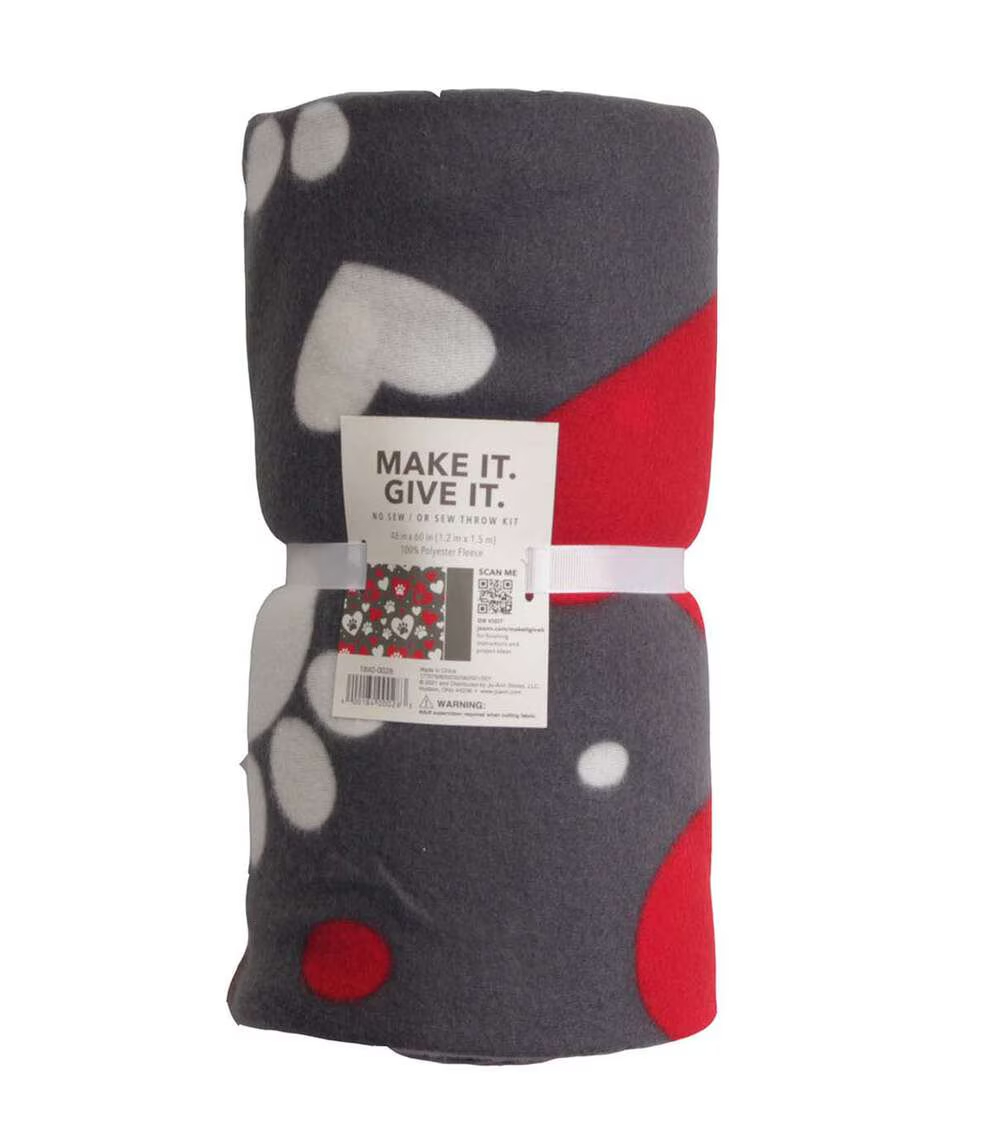 Spread Love and Warmth with the 48″ Wide Hearts & Paw Prints No Sew Fleece Blanket by Happy Value