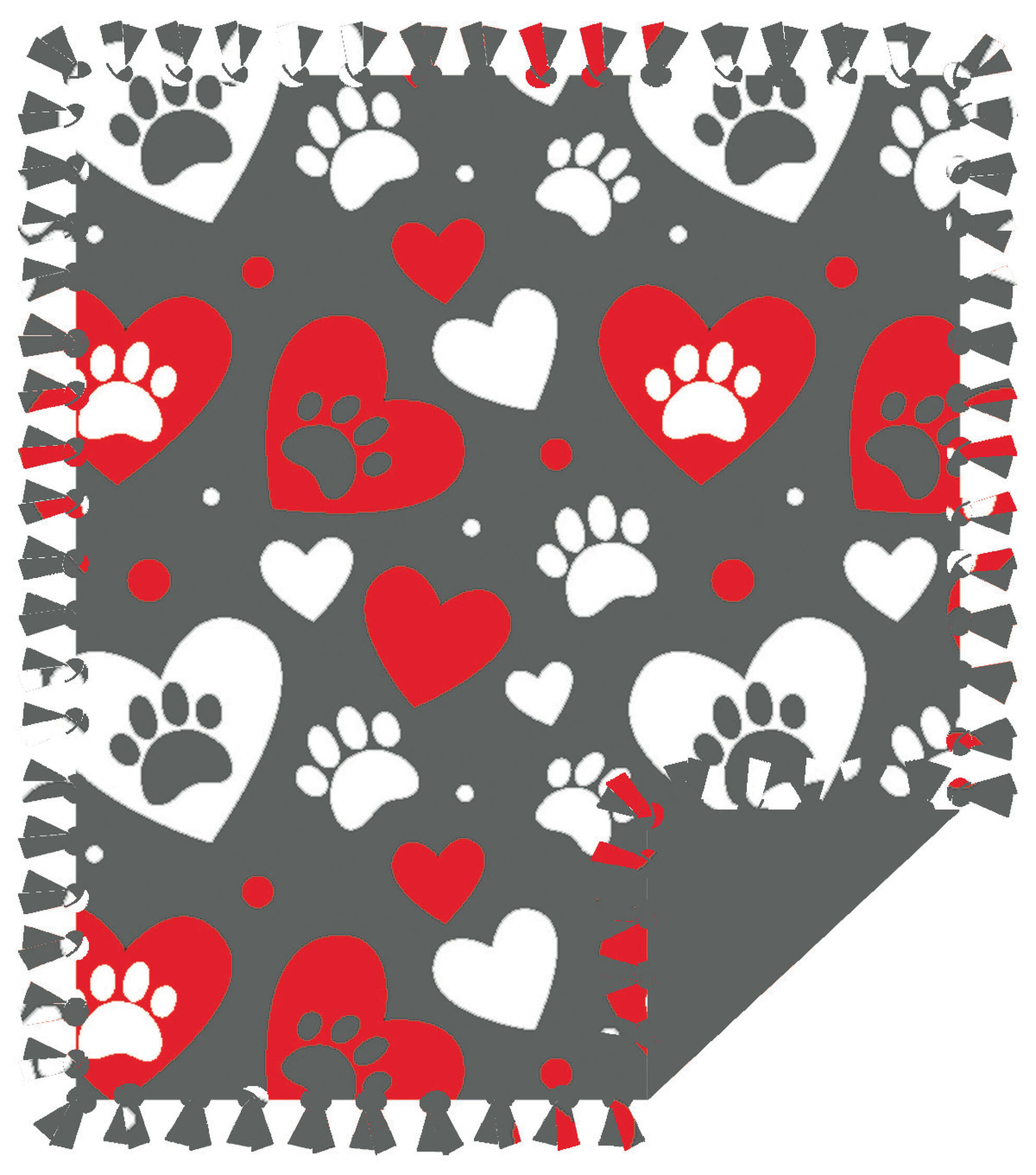 Spread Love and Warmth with the 48″ Wide Hearts & Paw Prints No Sew Fleece Blanket by Happy Value