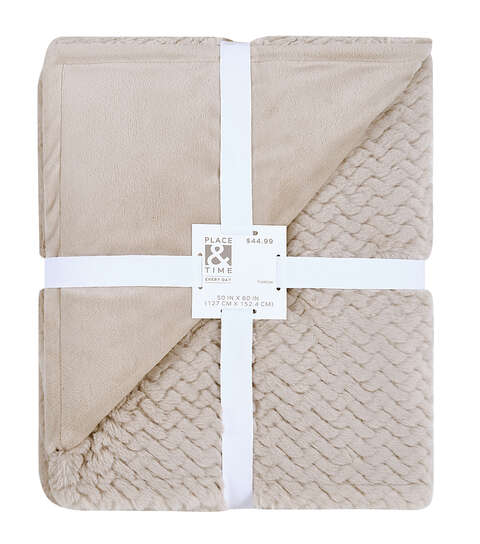 Get Cozy with the 50″ x 60″ Christmas Squiggle Taupe Faux Fur Throw by Place & Time