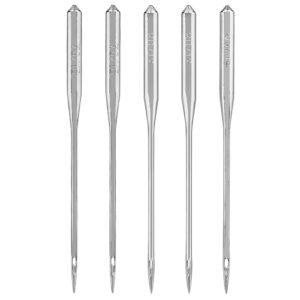 - Set includes 5 universal sewing machine needles that fit most domestic household sewing machines