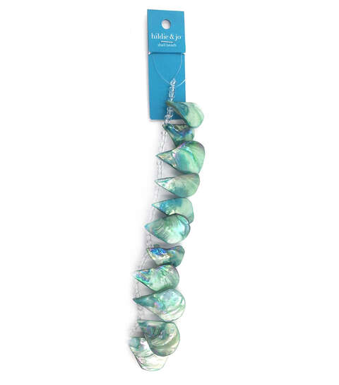 Add a nautical touch to your handmade jewelry pieces using the hildie & jo Aurora Borealis Teardrop Shell Strung Beads – Green. This pack contains a strand of strung shell beads sporting a pretty green AB hue. You can team them with a charm to design beautiful neckpieces and bracelets. They will also make a great gift for a beading enthusiast in your life.
