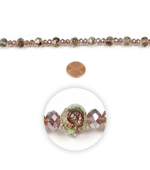 The hildie & jo Glass Bead Strand – Lavender & Green will help your handmade jewelry creations stand out. This pack includes sparkling, faceted glass beads in a mix of clear lavender crystal beads sporting interior metallic and floral swirls along with matching lavender spacer beads. These beads measure 9 mm and 6 mm. Combine them with other beads, chains and jewelry elements to create striking designs.