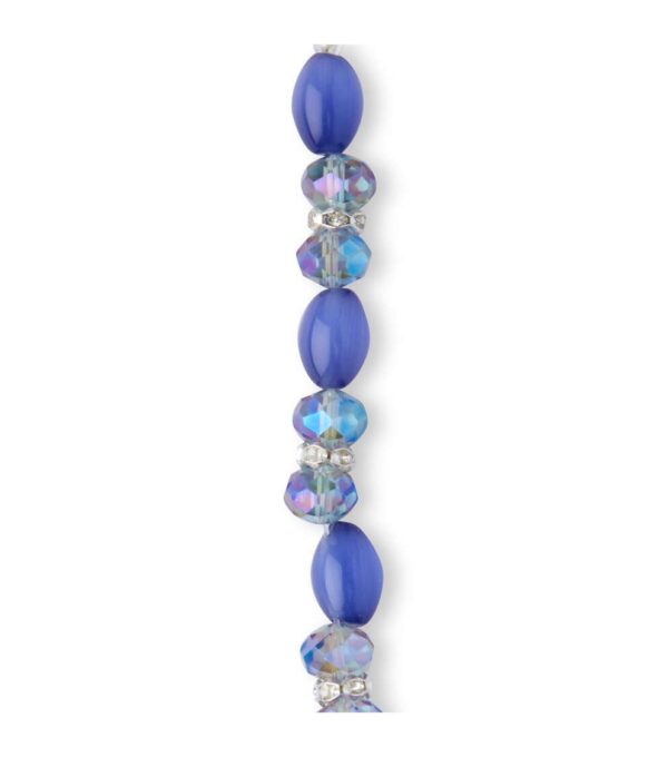 Designing elegant jewelry will be a breeze with the hildie & jo Glass & Metal Crystal Cat’s Eye Bead Strand – Purple. This 7-inch strand contains six cat’s eye beads, 12 crystal rondelles, and six metal and crystal spacer rondelles. These oval cat’s eye beads give out a lovely glow and change color under light. Use these beads to create lovely bracelets, necklaces, bag charms and more.