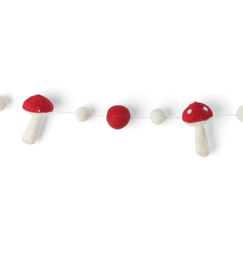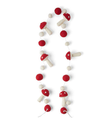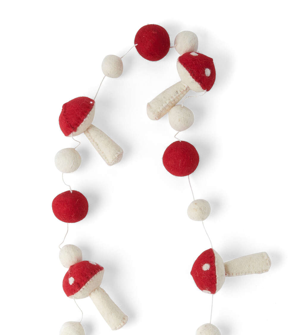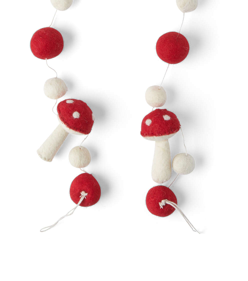 Add Some Festive Cheer with the 72″ Christmas Red Mushroom Felt Garland by Place & Time