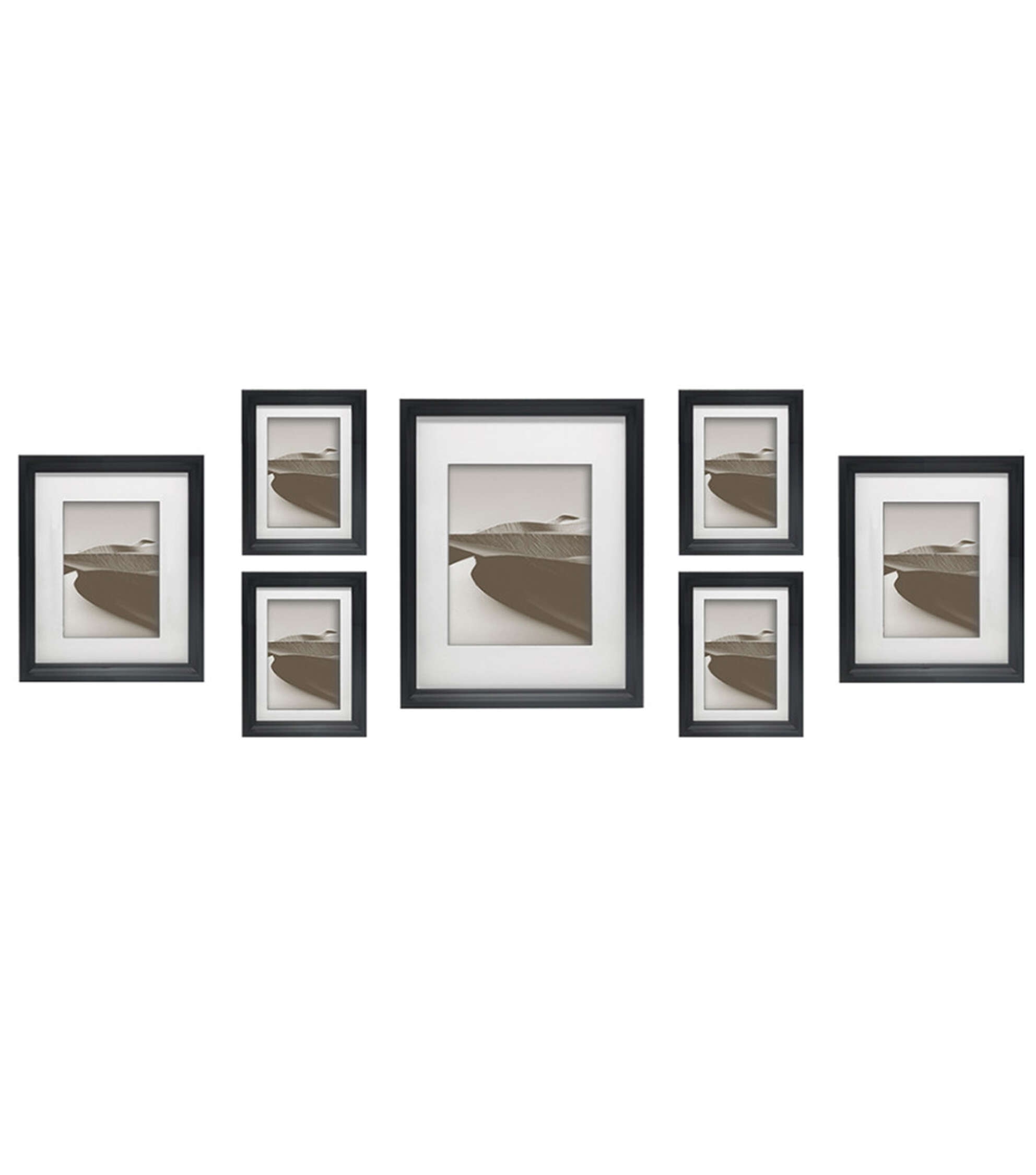 A versatile set for any art or photo enthusiast, the Place & Time 7-pack Black Matted Wall Gallery Frame Set offers frames in varying sizes to suit different display preferences. From larger 11×14 inch frames to smaller 5×7 inch and 4×6 inch options, these frames cater to diverse photo sizes both with and without mats. Each frame, crafted with real glass, ensures that your cherished memories remain vibrant and clear. The sawtooth hanger streamlines the mounting process, making it an elegant and functional addition to any space