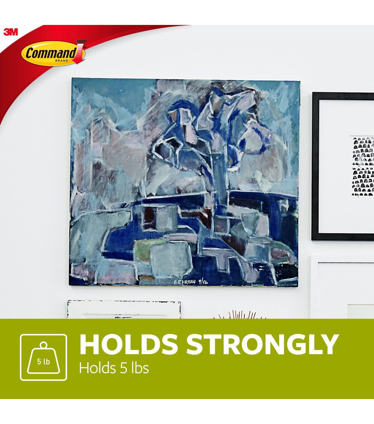Command Canvas Picture Hangers make hanging your canvas prints, paintings and decorations quick and easy. Once the Canvas Hanger is installed on your wall, simply place your canvas picture on the canvas hanger and you are done! The small sawtooth ridge on the canvas hanger grips into the canvas frame, or stretcher bar, providing extra grip and security. Best of all, when you are ready to take down or move your canvas pictures, they come off cleanly no nail holes or sticky residue. Command Canvas Picture Hangers are available in size large which hold most canvas pictures up to 18″ x 24″ and 3 pounds and size jumbo which hold most canvas pictures up to 24″ x 36″ and 5 pounds.
