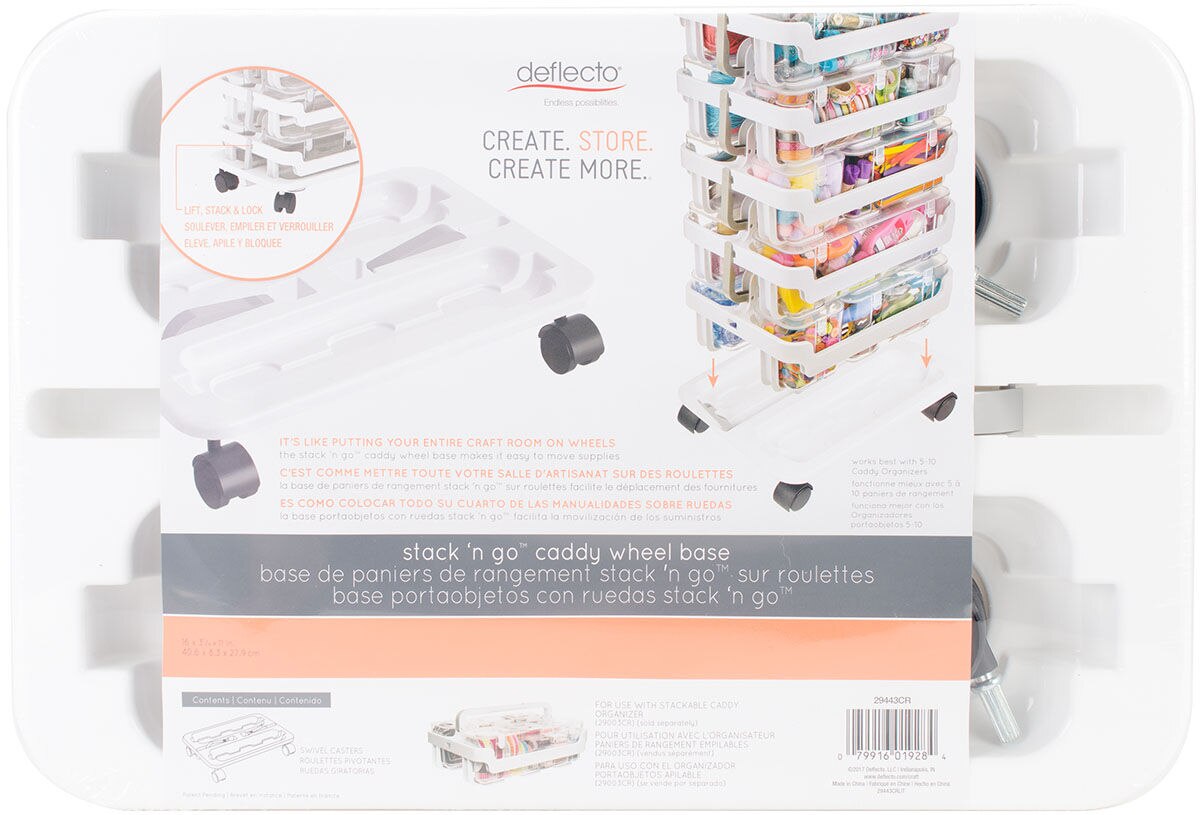 It’s like putting your craft room on wheels! The stack’n go caddy wheel base makes it easy to move supplies. For use with stackable caddy organizer 29003CR (sold separately), works best with 5-10 caddy organizers. Contains one 16×3.25×11 inch caddy base and four swivel casters. Imported.