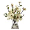A simple, yet elegant artificial plant that adds a delicate touch to any environment. The serene white flowers create a sense of harmony with its multiple stemmed displays, and are further accented by the gentle greenery housed in a modern styled glass vase. Whether using one as a centerpiece, or adding multiple arrangements throughout the home or office, this truly adds a gentle touch to any space.Silk floral arrangements are manufactured using synthetic materials and are well designed and constructed to be life-like in appearance.