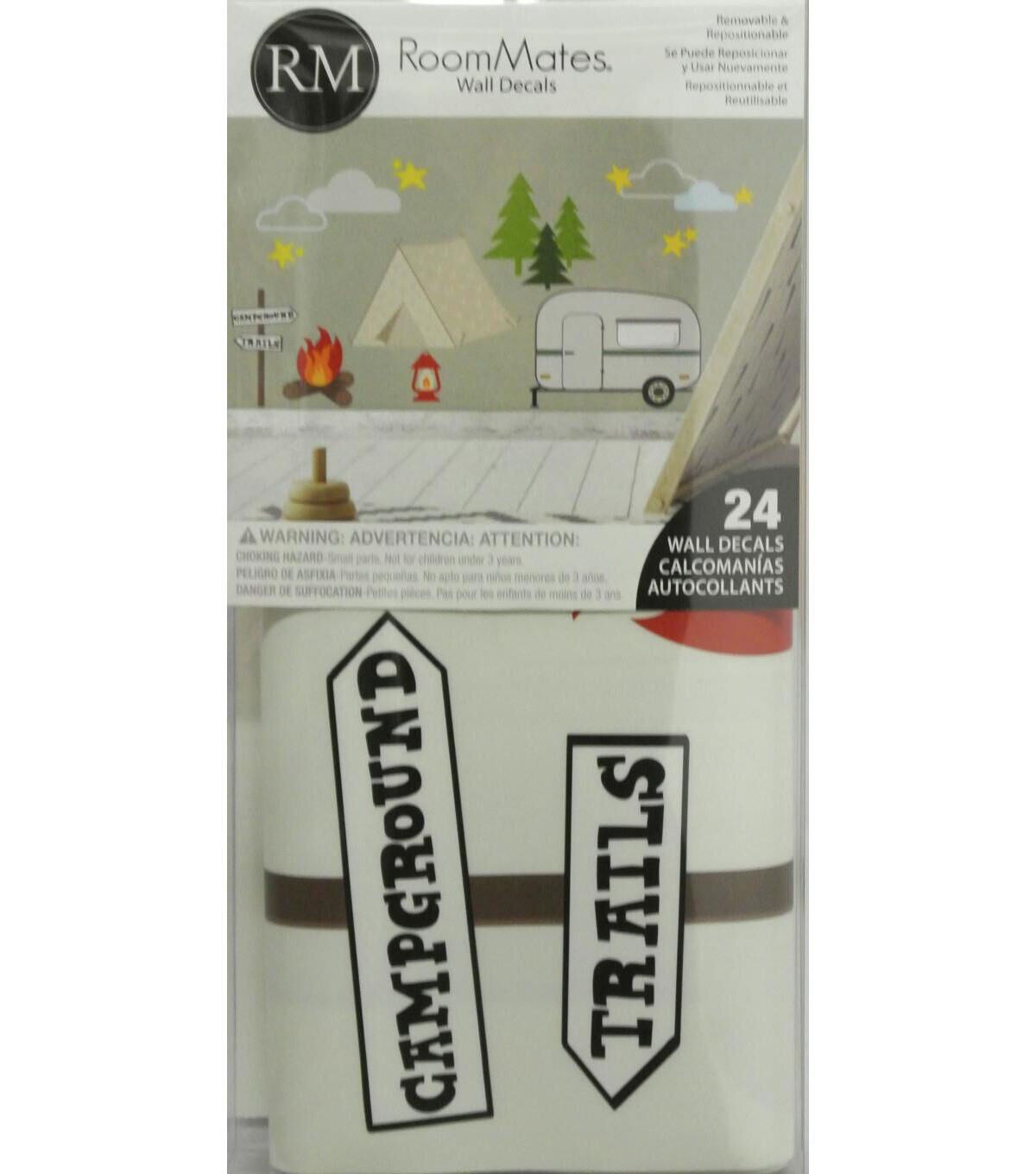 Give walls a unique transformation with Camping Peel and Stick Wall Decals by RoomMates. An innovative way of decorating any room, this set comes with 24 wall decals. Make walls pop in minutes with our fast and easy application process just peel and stick. Created with high quality vinyl, remove and reposition as often as needed leaving walls free of sticky residue. Watch your room transform with RoomMates.