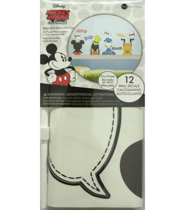 Walls instantly come to life with Mickey and Friends Peel and Stick Wall Decals with Dry Erase by RoomMates Decor. Complete with 12 wall decals, spread this decorative theme throughout an entire room in seconds. The application process is fast and easy. Simply peel and stick decals to any smooth, flat surface. Remove, reposition, and reuse as often as needed while keeping walls and decals completely safe. Recreate this look in your room today with RoomMates.