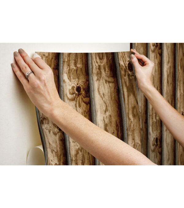Walls take on the look of organic texture with Cabin Logs Peel and Stick Wallpaper by RoomMates. This pattern, inspired by the natural world, gives any surface a dimensional look with little effort. Add architectural details to any space for an accent wall, full room makeover, furniture DIY, and more. Simply cut the peel and stick wallpaper to size, remove the backing, and stick to any smooth, clean surface. Pull off the wall in full sheets when it’s time to redecorate: no sticky residue or damage left behind. Bring the natural world into your home with peel and stick wallpaper from RoomMates.