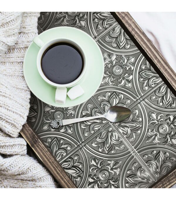 The classic beauty of Victorian tin tiles is interpreted into easy and affordable current design with these Silver Tin Peel and Stick StickTiles from RoomMates. Originally designed to imitate the exquisite ceiling plasterwork of grand European homes, faux pressed tin designs are now fashionably used for art-work, back splashes, cabinet faces, wainscoting and more. The 3D/embossed design elements within the tile capture timeless motifs like the fleur de lis, acanthus scrolls, medallions and architectural gridwork. Burnished metal finish in soft silver make these StickTiles the perfect accompaniment to any home décor with metal accents. RoomMates StickTiles are easy to clean and are the go-to solution for do-it-yourself easy and affordable décor installed with regular household tools, helping you decorate in minutes. 4 Tiles 10.5 inch x 10.5 inch 3.07 sq. ft.