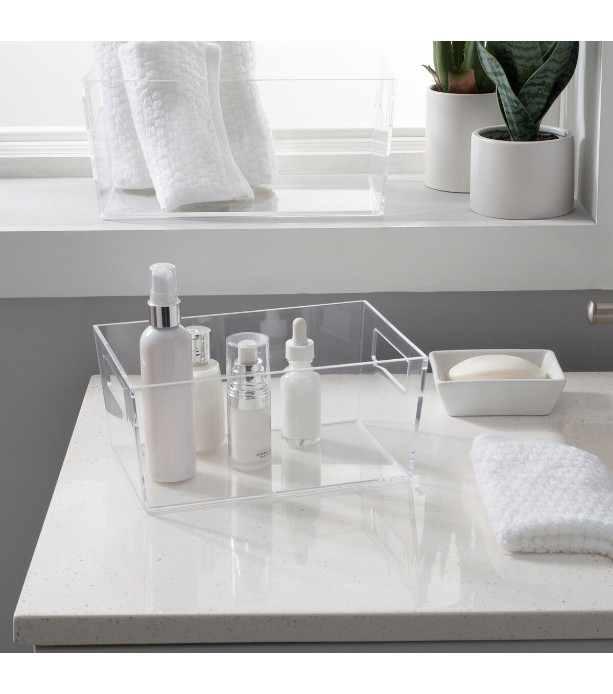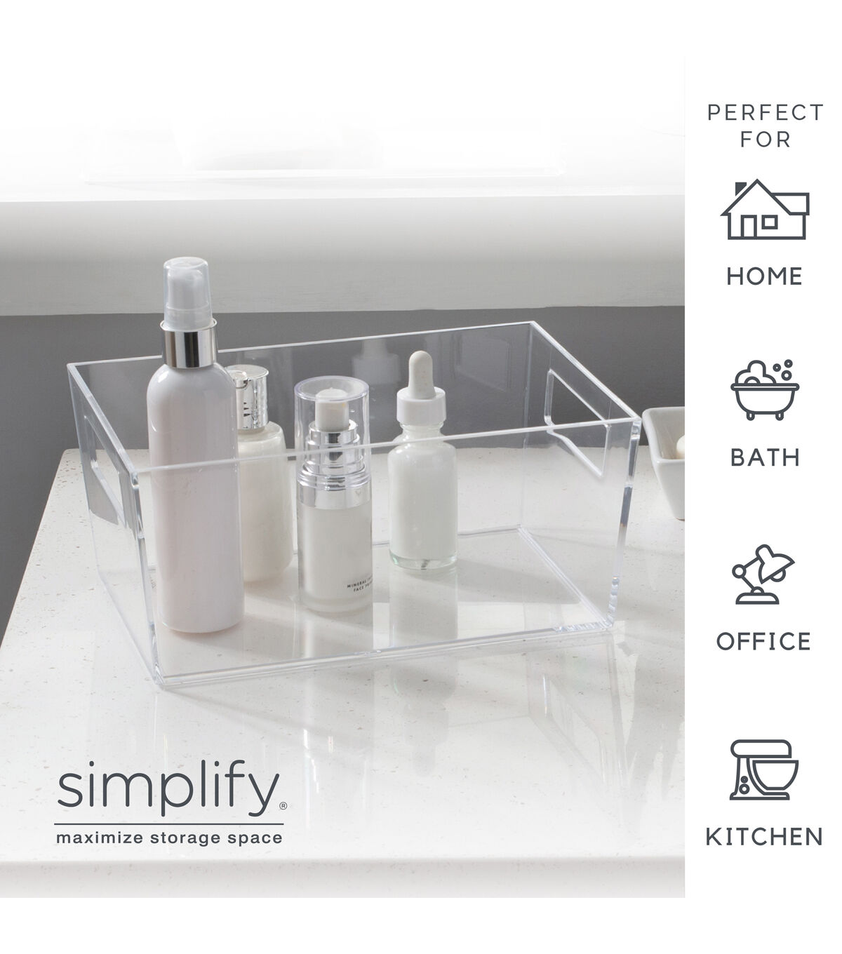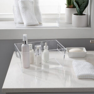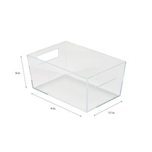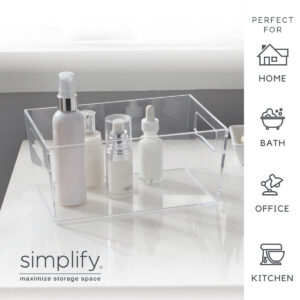 The Simplify Small Storage Bin is the best storage and organization solution. It is the perfect size for desk accessories such as pens, pencils, and note paper. It is also good for holding jewelry and cosmetics and brushes. Keep it in your bathroom to help organize shampoos and soaps. The clear design makes items inside visible and easy to find. The handle cut outs make it easy to lift and slide the bin. You can keep this transparent storage bin on your desktop or countertop surface because it fits with any room’s décor. You need this bin to help you organize your home!
