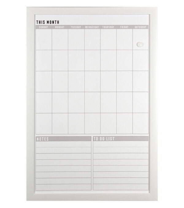 Mark important dates, pen down notes or create to-do lists using the Wipe Off Monthly Calendar Board. This wipe off board can be used month after months as you can easily wipe it clean every time you need a fresh start. Hang this monthly calendar on your living room or kitchen wall.