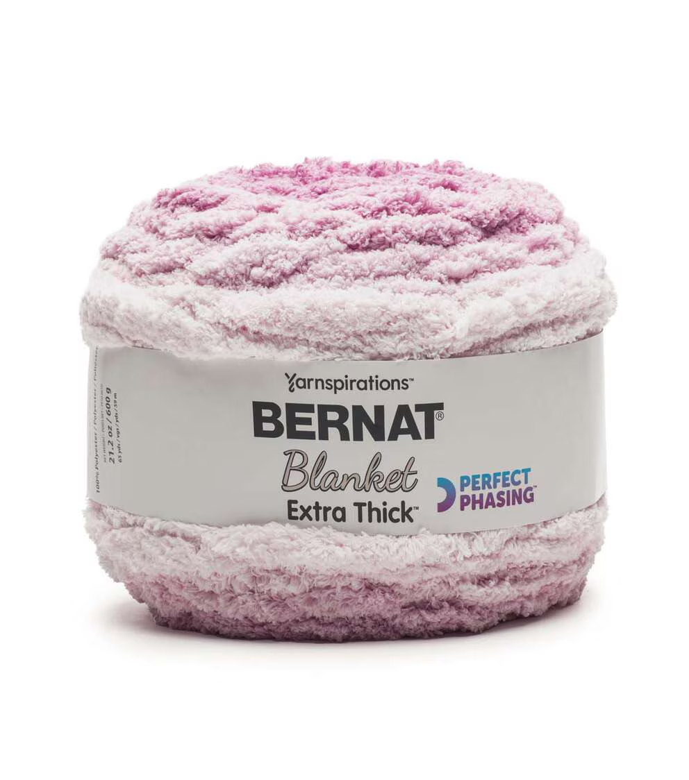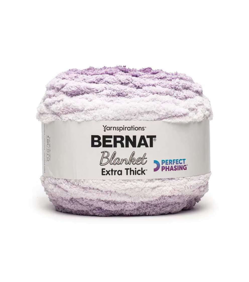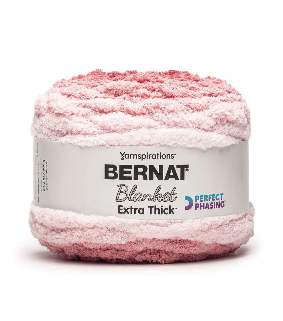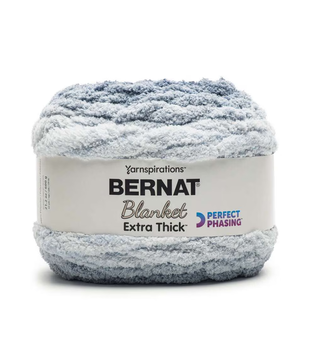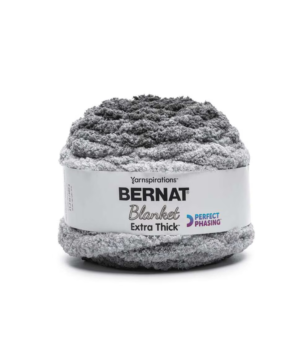 Now combining our best selling, super cozy Bernat Blanket Extra Thick yarn with the seemless color changes of Perfect Phasing. With Perfect Phasing, the color transitions throughtout the ball without any breaks or or visable blend, making your projects look intricate with no effort required. These shades are now available in your favourite Extra Thick yarn, with it’s jumbo gauge allowing you to make your next home staples easily and quickly, perfect for large blankets and home decor projects. Indulge in the softness, embrace the thickness, and make your softest, snuggliest creations a reality!