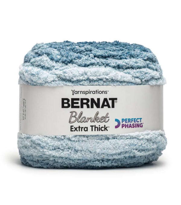 Now combining our best selling, super cozy Bernat Blanket Extra Thick yarn with the seemless color changes of Perfect Phasing. With Perfect Phasing, the color transitions throughtout the ball without any breaks or or visable blend, making your projects look intricate with no effort required. These shades are now available in your favourite Extra Thick yarn, with it’s jumbo gauge allowing you to make your next home staples easily and quickly, perfect for large blankets and home decor projects. Indulge in the softness, embrace the thickness, and make your softest, snuggliest creations a reality!
