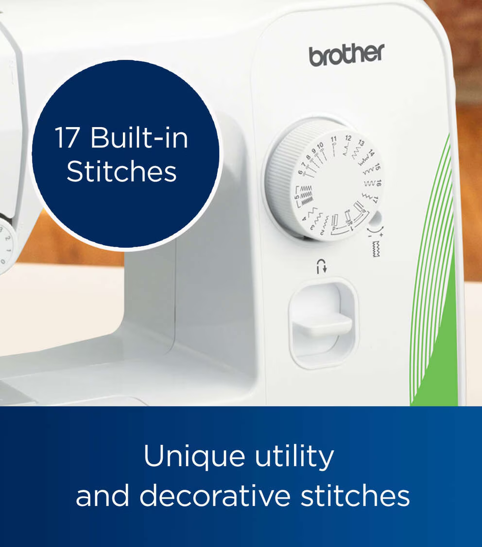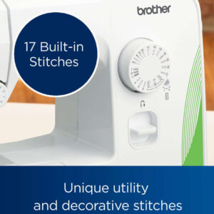 17 built-in stitches include utility, decorative & 1 four-step auto-size buttonhole styles.