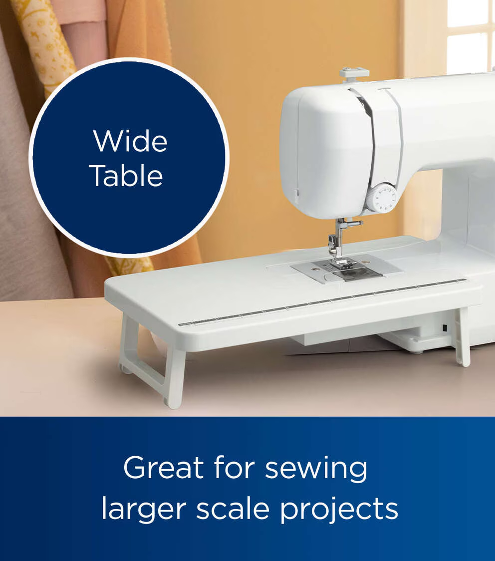 Maximize your sewing potential, the free arm makes sewing cuffs, sleeves, skinny jeans and other cylindrical items a breeze. And the wide table gives extra room for a larger project.