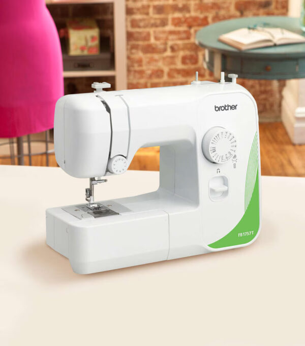 The FB1757T handles basic sewing and mending and is easy to use. Built-in are 17 unique utility and decorative stitches and an included 4-step buttonholer. This model also features a jam-resistant drop-in top bobbin and a brightly lit LED work area.