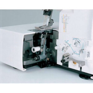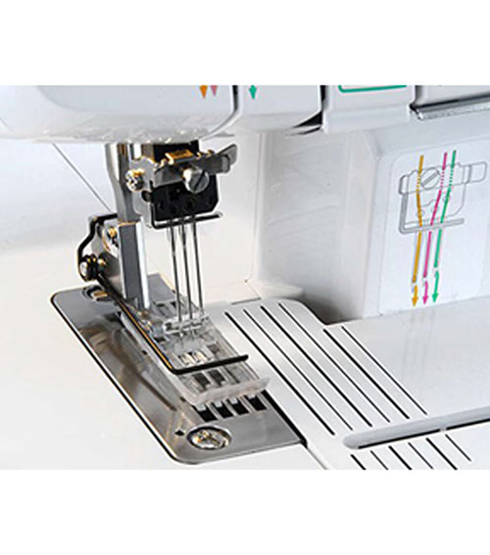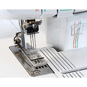 The 2340CV Cover Stitch is an advanced serger, which allows you to create a wide range of cover stitches on all types and weights of fabric for both decorative and constructive applications. Expand your creativity with the 2340CV’s advanced technology. It features a tri-cover stitch, wide and narrow cover stitches, color coded threading, easy looper threading, adjustment dials for stitch length, a presser foot dial, snap on feet and differential feed which allows you to alter the speed at which your fabric is feeding through the machine. With 3 needles and one looper thread, the cover stitch machine creates professional hems, chain stitch and decorative stitching- great for making the perfect T-shirt in no time!