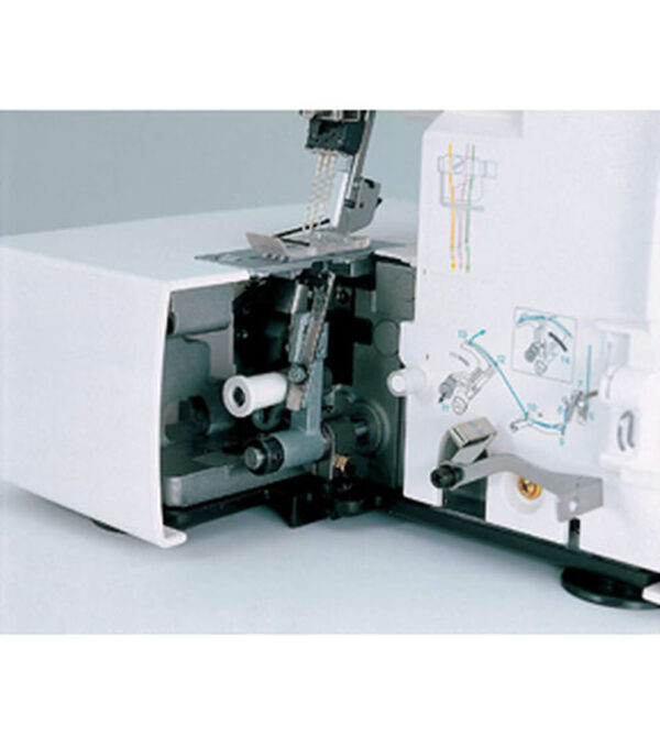 The 2340CV Cover Stitch is an advanced serger, which allows you to create a wide range of cover stitches on all types and weights of fabric for both decorative and constructive applications. Expand your creativity with the 2340CV’s advanced technology. It features a tri-cover stitch, wide and narrow cover stitches, color coded threading, easy looper threading, adjustment dials for stitch length, a presser foot dial, snap on feet and differential feed which allows you to alter the speed at which your fabric is feeding through the machine. With 3 needles and one looper thread, the cover stitch machine creates professional hems, chain stitch and decorative stitching- great for making the perfect T-shirt in no time!