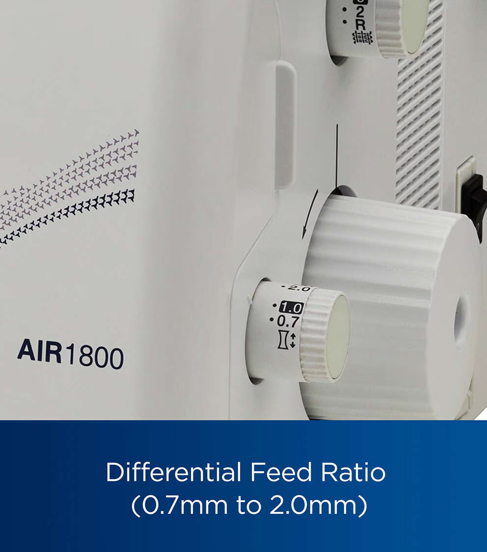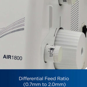 - Differential Feed: The Differential Feed Ratio (0.7mm to 2.0mm) on the AIR1800 provides outstanding stitch quality and acts as the tool for custom lettuce edge finishes on specialty materials.
