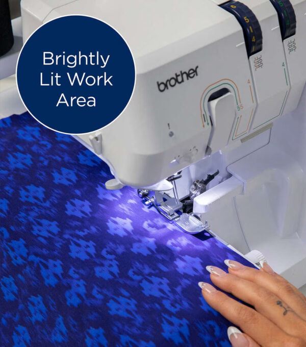 - Brightly Lit Work Area: The AIR1800 has high quality lighting that’s easy on the eyes when sewing on dark fabrics.