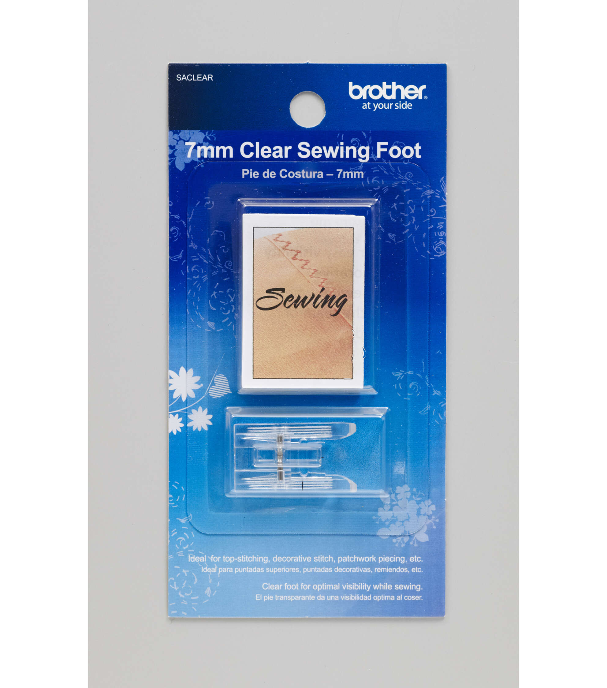The Brother SACLEAR 7mm clear sewing foot can be used with any application where visibility of seams or pattern markings are desired for ease in embellishment as the foot is clear plastic. Perfect for quilting applique. This is a genuine Brother accessory.